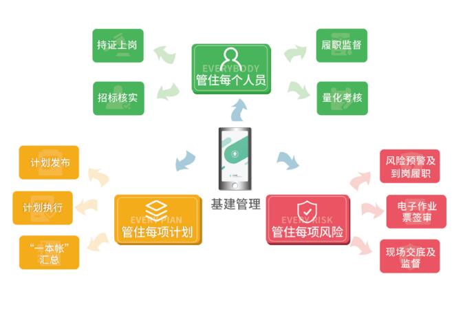 基建“e安全”綜合應(yīng)用物聯(lián)網(wǎng)和移動互聯(lián)網(wǎng)等技術(shù),通過現(xiàn)場人員實名制管理、關(guān)鍵環(huán)節(jié)在線管控、作業(yè)現(xiàn)場分級監(jiān)控、違章行為智能預(yù)警等功能,實現(xiàn)“管住每一位人員、管住每一項計劃、管住每一項風(fēng)險”的管控目標(biāo),抓住關(guān)鍵點、關(guān)鍵人,抓實現(xiàn)場兩級管控,開啟基建安全精細(xì)化管控新模式,為疫情防控期間工程安全復(fù)工提供有力支撐。