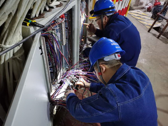 搶修期間,新盤柜的安裝配線給大家不小的挑戰(zhàn)。因受電纜長度限制和新盤柜內(nèi)設(shè)備布置不相同的影響,在電纜與盤柜控制端子、動(dòng)力400伏接線排尺寸不夠的情況下,致使設(shè)備無法安裝。搶修人員群策群力,跨專業(yè)進(jìn)行分析討論,想出了辦法解決現(xiàn)場問題,例如:利用舊盤柜的銅牌做延伸接線排,拆除舊盤柜的支撐絕緣子,再自己動(dòng)手制作絕緣子支撐使得延長銅排能懸掛,將新盤柜的進(jìn)線方式從下進(jìn)線改成上進(jìn)線,對(duì)盤柜重新開進(jìn)線孔,對(duì)新進(jìn)線孔拋光打磨做防護(hù),甚至對(duì)接線方式改動(dòng)同時(shí)對(duì)圖紙也進(jìn)行重新繪制,這都無形地增加了很多工作量,大家加班至凌晨已經(jīng)是一種常態(tài),但是在第二天早上8點(diǎn)所有的檢修施工人員會(huì)依然整齊列隊(duì)站在廠房門口召開班前會(huì),安排部署當(dāng)天的工作,隨后又會(huì)投入到新一天緊張的搶修決戰(zhàn)之中。