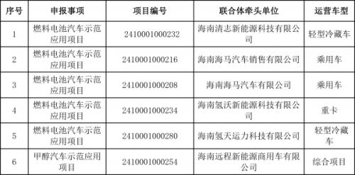 海南省工業(yè)和信息化廳關(guān)于公布海南省第一批(2023-2024年)燃料電池汽車等技術(shù)示范應(yīng)用項(xiàng)目的通告