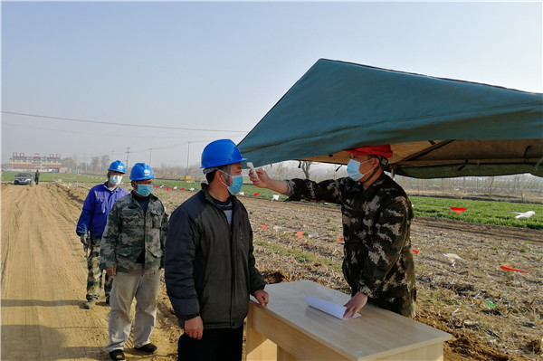 “您好,我是線路工程施工現(xiàn)場的疫情防控員,施工區(qū)域封閉式管理,進(jìn)場人員請主動配合測量體溫”。