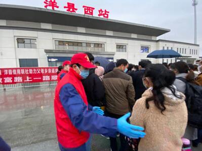 青年戰(zhàn)“疫”突擊隊(duì)攜帶一次性雨衣、純凈水等物資前往洋縣西站,參與了運(yùn)送農(nóng)民工復(fù)工返崗高鐵專列的志愿服務(wù)活動(dòng),不畏風(fēng)雨積極助力復(fù)工復(fù)產(chǎn)。