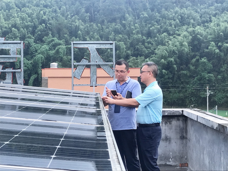 除了建設(shè)大棚蔬菜基地,高鋒還一直在琢磨,如何結(jié)合電網(wǎng)企業(yè)的專業(yè)優(yōu)勢促進(jìn)打贏脫貧攻堅(jiān)戰(zhàn)。經(jīng)過調(diào)研,高鋒帶領(lǐng)駐村工作隊(duì)積極探索適合林洞村發(fā)展的扶貧項(xiàng)目,多次與南方電網(wǎng)能源公司溝通,通過實(shí)地調(diào)研和可行性分析,結(jié)合林洞村日照較長、光資源豐富的特點(diǎn),最終決定在林洞村開展光伏扶貧項(xiàng)目。2017年建成了裝機(jī)容量30kW的一期光伏項(xiàng)目,2018年9月裝機(jī)容量70.5KW的光伏發(fā)電二期項(xiàng)目也竣工并網(wǎng)發(fā)電,至此,在駐村工作隊(duì)的協(xié)調(diào)下,林洞村共建設(shè)了光伏電站100kW。