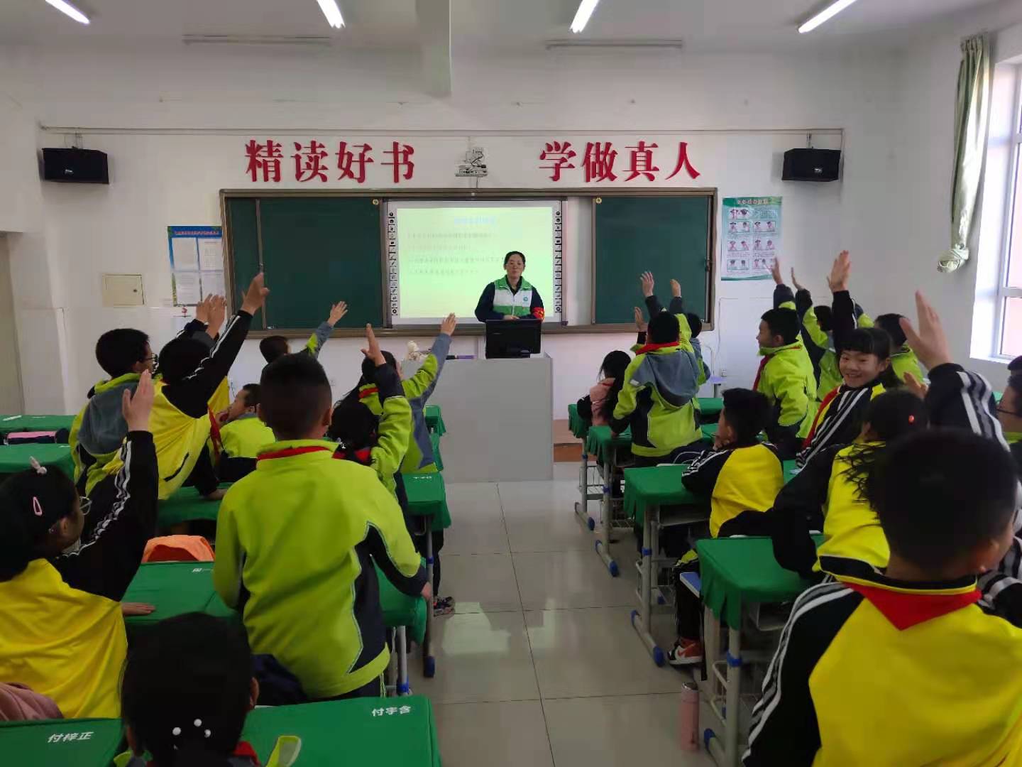 “濕手能不能觸摸家用電?”你們?cè)谏钪杏羞^觸電的經(jīng)歷嗎?”為普及小學(xué)生安全用電知識(shí)和觸電急救技能,課堂上,志愿者們結(jié)合設(shè)計(jì)精美的PPT,帶領(lǐng)小學(xué)生們同看視頻,同唱歌謠,通過現(xiàn)場(chǎng)問答與同學(xué)們互動(dòng),活躍了課堂氣氛,提升了小學(xué)生對(duì)安全用電意識(shí)。