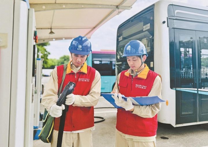 蘇州供電公司員工檢查新能源汽車充電樁,排查安全隱患。陳驊 攝