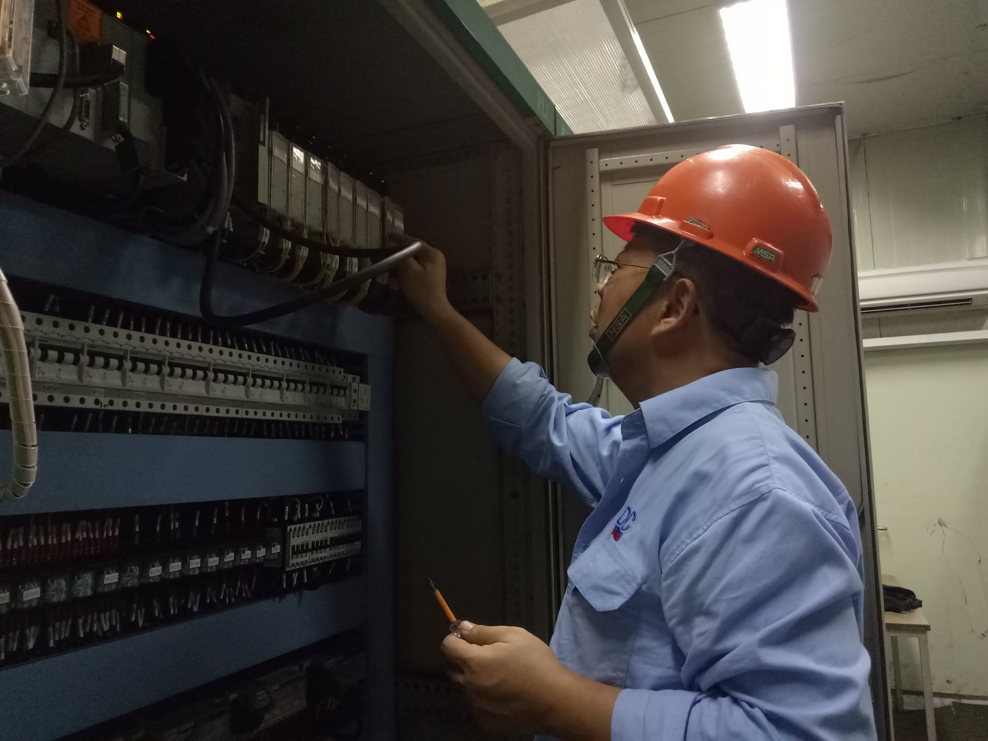 印尼芝拉扎項(xiàng)目部職工檢修設(shè)備(王永平/攝)