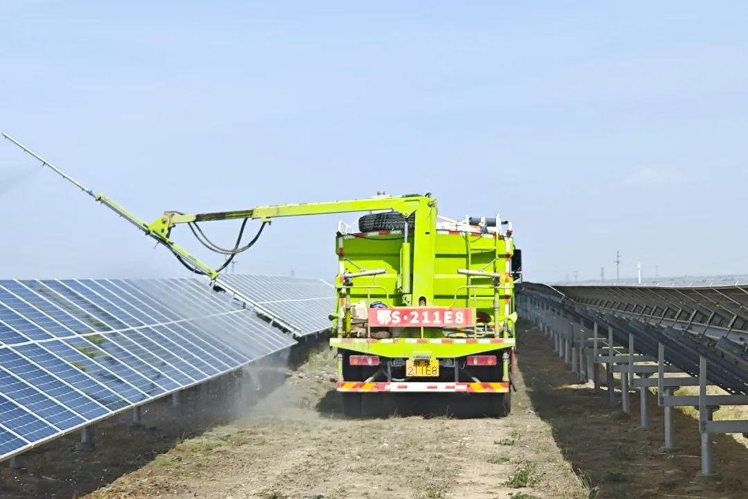 在甘肅,三峽能源甘肅分公司武威檢修中心積極應(yīng)對夏日高溫和沙塵天氣可能給設(shè)備帶來的不良影響,全方位落實(shí)設(shè)備巡檢,定期開展紅外測溫,防止高溫天氣導(dǎo)致設(shè)備過熱異常;同時(shí),適時(shí)對場區(qū)光伏組件進(jìn)行全面清洗,盡可能避免因沙塵遮擋,影響設(shè)備出力效率。