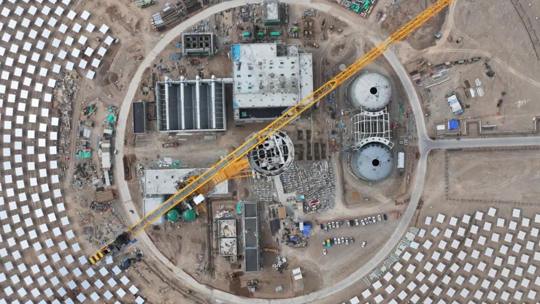 在甘肅,三峽集團(tuán)第一批光熱項(xiàng)目之一的瓜州10萬千瓦項(xiàng)目建設(shè)現(xiàn)場,各施工作業(yè)正在有條不紊開展,主廠房、儲換熱島、化水車間、廠前區(qū)等建筑主體結(jié)構(gòu)均已封頂,汽輪機(jī)中低壓缸、發(fā)電機(jī)定子、蒸發(fā)器、汽包等關(guān)鍵設(shè)備均已就位,建設(shè)者們正頂著六月的驕陽為并網(wǎng)發(fā)電全力奮戰(zhàn)。