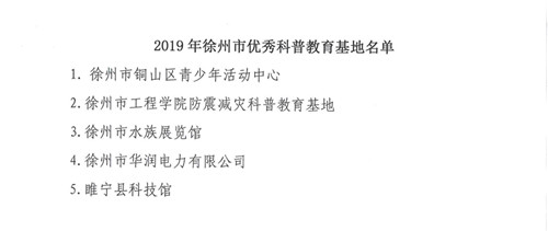 中國(guó)電力網(wǎng)訊 近日,徐州市科協(xié)發(fā)布《關(guān)于公布2019年度省、市級(jí)優(yōu)秀科普教育基地名單的通知》(徐科協(xié)辦發(fā)﹝2020﹞5號(hào)),公司在72家科普教育基地中脫穎而出,被評(píng)為2019年徐州市優(yōu)秀科普教育基地,并獲得專項(xiàng)獎(jiǎng)勵(lì),是徐州市唯一一家獲得表彰的企業(yè)類科普教育基地。