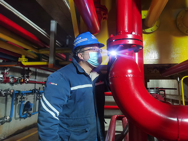 陳東汛在生產(chǎn)現(xiàn)場(chǎng)檢查設(shè)備設(shè)施