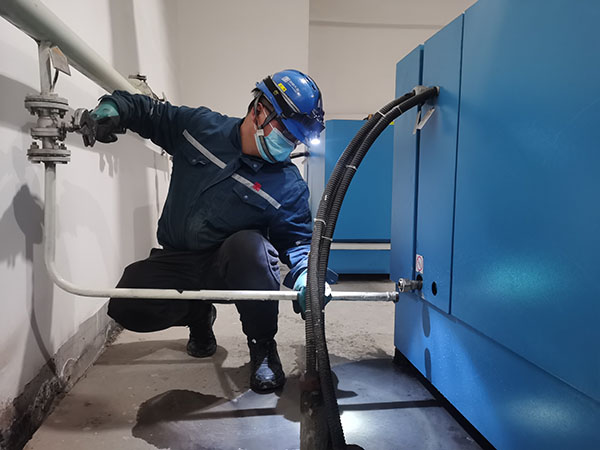 王帥在安裝氣系統(tǒng)管路