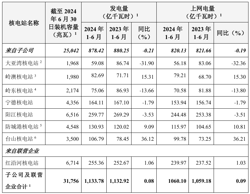 中國廣核公告披露2024年第二季度運(yùn)營情況