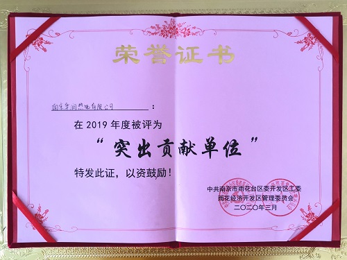 中國電力網(wǎng)訊 4月28日,南京市雨花經(jīng)濟(jì)開發(fā)區(qū)管委會(huì)婁杰書記一行四人,蒞臨南京華潤熱電有限公司并向公司授予雨花經(jīng)濟(jì)開發(fā)區(qū)2019年度“突出貢獻(xiàn)單位”獎(jiǎng)牌和證書,對公司2019年在開發(fā)區(qū)社會(huì)、經(jīng)濟(jì)發(fā)展等工作中做出的突出表現(xiàn)進(jìn)行表彰??偨?jīng)理丁建民代表公司領(lǐng)取了獎(jiǎng)牌。