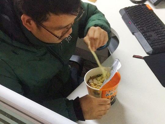 “最大的困難還是吃飯,大年三十晚上我們還能點(diǎn)到外賣(mài),從初一開(kāi)始就沒(méi)有店鋪營(yíng)業(yè)了,泡面就是我們的工作餐?!蓖踝雍栏袊@道。