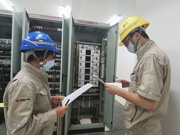 團(tuán)員青年現(xiàn)場(chǎng)核對(duì)直流系統(tǒng)1號(hào)整流裝置熔斷器故障處理安全措施
