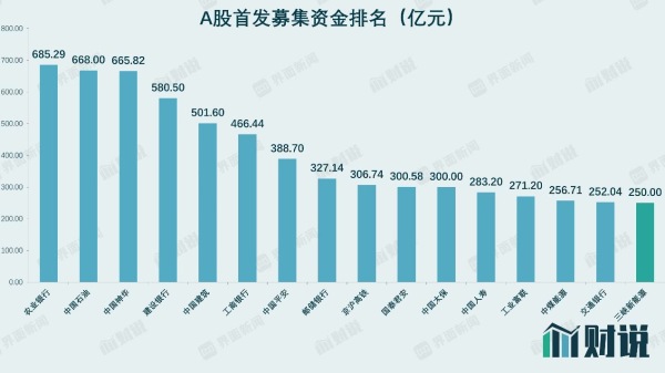 如果三峽新能源IPO成功,此次募資規(guī)模可在A股歷史上排名第16位。