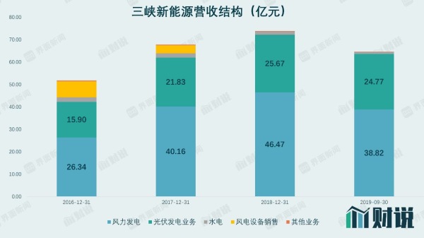 三峽新能源2018年實現(xiàn)營收73.8億元,其中風(fēng)力發(fā)電板塊營收為46.5億元,光伏發(fā)電板塊營收為25.7億元,實現(xiàn)凈利潤為26.7億元。