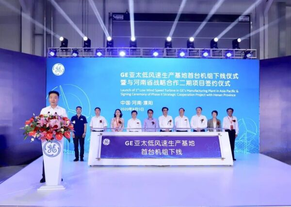 8月5日,GE與河南省政府還正式簽署了二期投資合作協(xié)議,將GE與河南省的合作帶到了一個新的高度。根據(jù)協(xié)議,雙方將以GE濮陽風電生產(chǎn)基地為基礎,利用GE的技術和資源,在濮陽打造集風電工程應用中心、風電數(shù)字化服務中心、風電培訓中心和風機運行維護中心為一體的輻射亞太的陸上風電綜合制造和服務基地,助力濮陽形成完備的風電設備制造全產(chǎn)業(yè)鏈,走出河南,走出中國,走向國際。