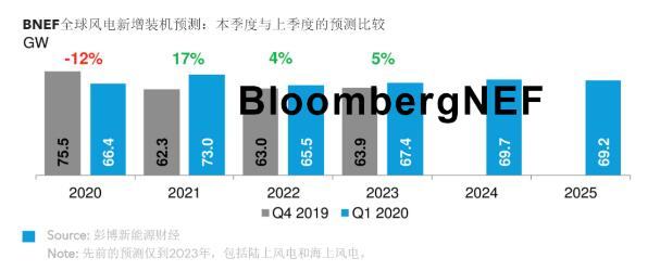 12%-疫情沖擊風電行業(yè)后,BNEF風電新增吊裝容量預測較上一季度的下調幅度