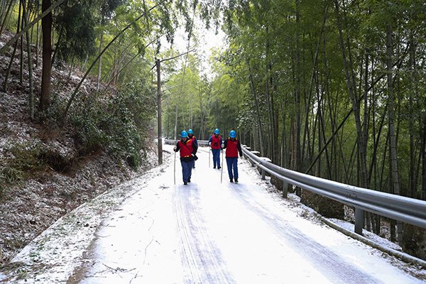 中國(guó)電力網(wǎng)訊  1月7日清晨,在平均海拔700米以上的浙江寧海雙峰山區(qū),隨著強(qiáng)冷空氣的抵達(dá),大山深處已覆上皚皚白雪。寧??h黃壇鎮(zhèn)雙峰片區(qū)有2900多戶村民,為了防止冰凍天氣以及積雪對(duì)高壓線路的影響,國(guó)家電網(wǎng)浙江電力(寧海)紅船共產(chǎn)黨員服務(wù)隊(duì)分成四組,一大早就開(kāi)始對(duì)這里的高壓線路進(jìn)行巡視和基礎(chǔ)維護(hù)。