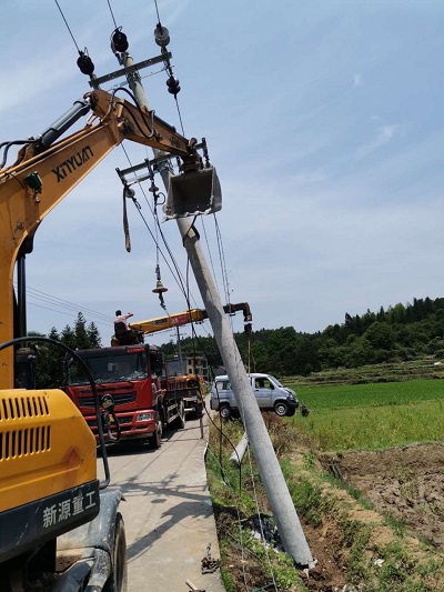 險情就是命令。敖溪供電所所長助理曾海林迅速組織搶修人員趕赴事故現(xiàn)場。7時25分,供電員工抵達現(xiàn)場,立即啟動突發(fā)事故搶修預案,并在現(xiàn)場 拉起了警戒線,避免車輛、行人靠近。確?,F(xiàn)場安全措施到位后,曾海林協(xié)調挖掘機、吊車等設備就位,準備電桿、導線等施工材料,做好搶修前的各項準備工作。