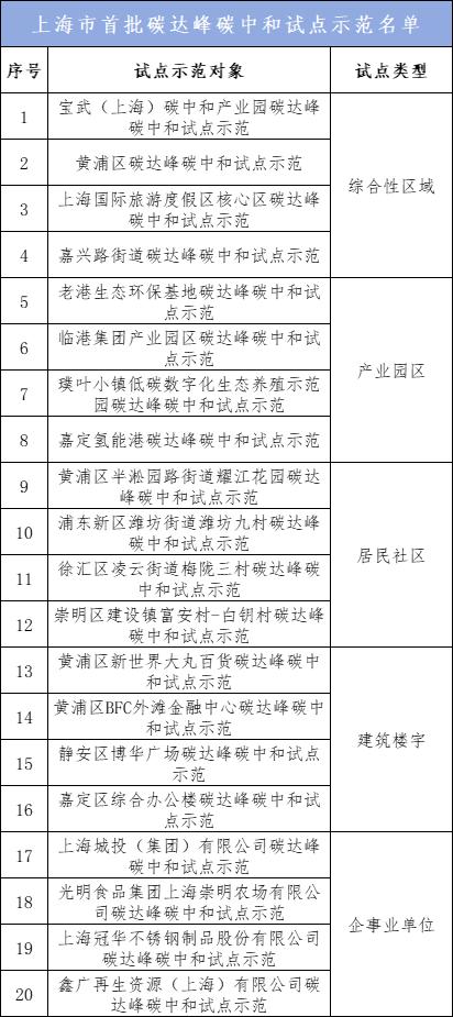 今年8月15日是第二個(gè)全國(guó)生態(tài)日,在長(zhǎng)寧區(qū)舉辦的全國(guó)生態(tài)日上海主場(chǎng)活動(dòng)上,上海首批碳達(dá)峰碳中和試點(diǎn)示范名單公布,包含20個(gè)試點(diǎn)示范對(duì)象。
