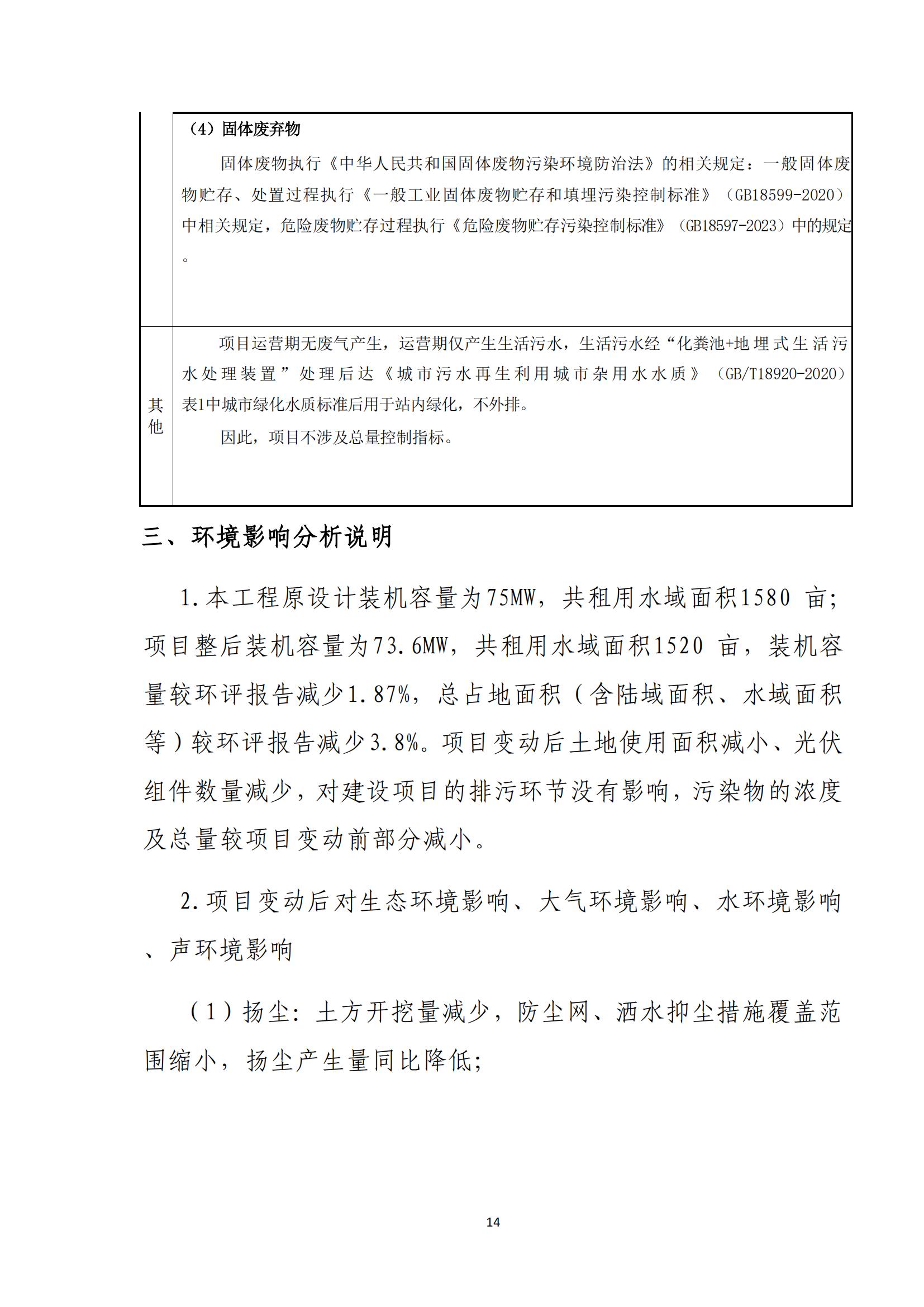 大唐宣州區(qū)貍橋鎮(zhèn)75MW漁光互補發(fā)電項目非重大變動環(huán)境影響分析說明