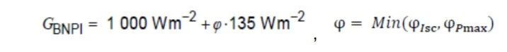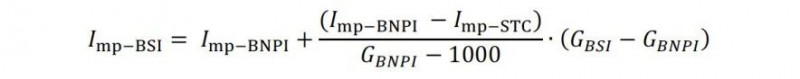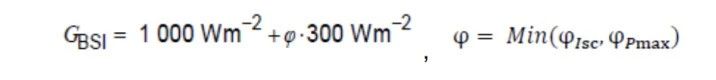 增加雙面組件的熱循環(huán)測試注入的電流要求,可根據(jù)電流與輻照度的線性關(guān)系,按照如下公式計(jì)算: