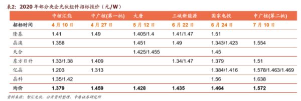 硅料供給收緊,自上而下抬高產(chǎn)業(yè)鏈各環(huán)節(jié)價(jià)格。年初海外部分硅料產(chǎn)能退出市場(chǎng),七月國(guó)內(nèi)硅料廠事故,硅料供給不斷收緊,外加下半年是光伏裝機(jī)高峰,需求旺盛,供需兩端雙驅(qū)動(dòng)進(jìn)一步拉高光伏產(chǎn)業(yè)鏈價(jià)格。下半年光伏產(chǎn)業(yè)鏈價(jià)格經(jīng)過(guò)了Q2的最低點(diǎn)后,一改下跌趨勢(shì),從硅料端向下傳導(dǎo),價(jià)格一路上漲。從各央企2020年招標(biāo)報(bào)價(jià)可以看出,相對(duì)于Q2期間招標(biāo)價(jià)格,7月之后有10%左右的上升。