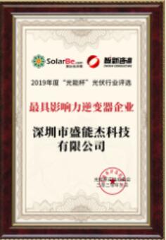 盛能杰榮膺2019年度“光能杯”最具影響力逆變器企業(yè)獎(jiǎng)