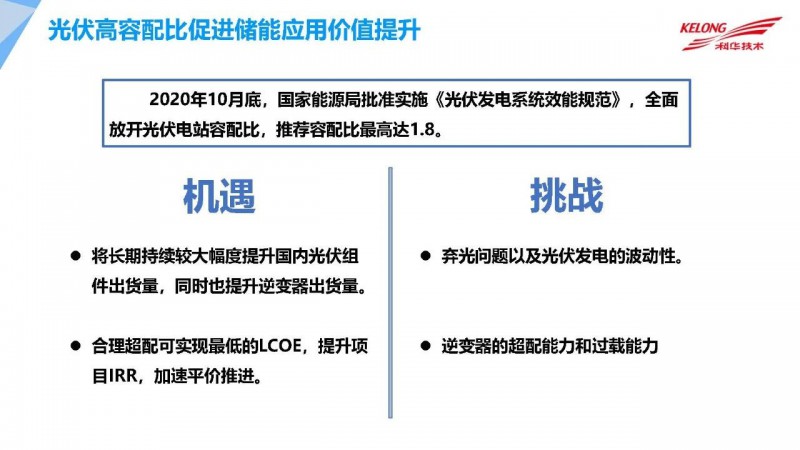 2021年2月3日,由中國(guó)光伏行業(yè)協(xié)會(huì)主辦的“光伏行業(yè)2020年發(fā)展回顧與2021年形勢(shì)展望網(wǎng)絡(luò)研討會(huì)”上,科華數(shù)據(jù)股份有限公司新能源事業(yè)部副總經(jīng)理曹建從多方面介紹了我國(guó)目前光伏+儲(chǔ)能行業(yè)的最新情況以及未來展望。曹建總經(jīng)理表示,未來中國(guó)的能源發(fā)展將會(huì)經(jīng)歷從高碳到低碳再到零碳的重要階段,光伏未來將在我國(guó)發(fā)電體系中占比越來越高。儲(chǔ)能能夠較好的降低光伏發(fā)電成本,全球角度來看,儲(chǔ)能項(xiàng)目在五年的時(shí)間內(nèi)降低了近4倍。未來光伏+儲(chǔ)能將創(chuàng)造更多更加安全可靠的光伏發(fā)電場(chǎng)景,同時(shí)其具備快速響應(yīng)電網(wǎng)調(diào)頻等眾多優(yōu)勢(shì),將是未來新能源電力市場(chǎng)發(fā)展的必然趨勢(shì)之一。