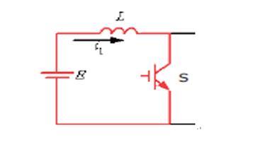 直流電E全部加在電感上,即此時電源E為電感充電,設(shè)開關(guān)管導(dǎo)通時間為Ton,那么在此期間內(nèi)電感上的電壓等于E。