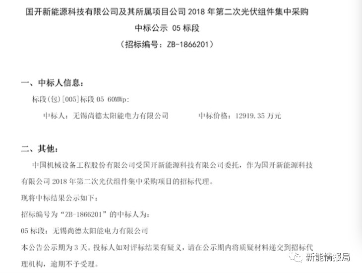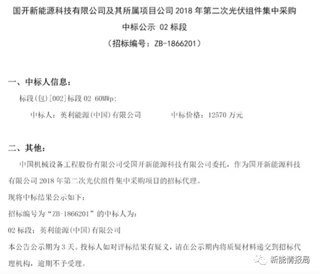 7月28日,國(guó)開新能源科技有限公司及其所屬項(xiàng)目公司發(fā)布2018年第二次光伏組件集中采購(gòu)中標(biāo)公示。