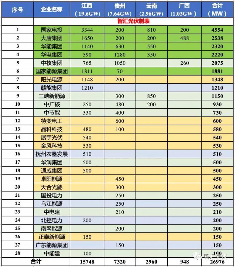 在近期江西、貴州、云南、廣西四省公布的2021年光伏項(xiàng)目名單中,華電集團(tuán)總規(guī)模達(dá)到2.22GW!