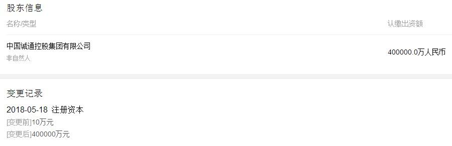 誠通集團(tuán)是國資委首批中央企業(yè)建立和完善國有獨(dú)資公司董事會(huì)試點(diǎn)企業(yè)和國有資產(chǎn)經(jīng)營公司試點(diǎn)企業(yè)。列2009中國企業(yè)500強(qiáng)第187名,2009中國服務(wù)業(yè)企業(yè)500強(qiáng)第62名,2008中國物流、倉儲(chǔ)、運(yùn)輸、配送服務(wù)業(yè)第3名。北京誠通金控是中國誠通集團(tuán)的全資子公司,成立于2015年,在今年5月份剛剛將注冊資本由10萬元變更為40億元。