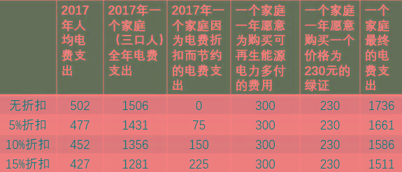 所謂居民電費(fèi)折扣,是指如果認(rèn)購(gòu)一個(gè)綠證,可以獲得一個(gè)自然年度電費(fèi)支出的一定比例的折扣,認(rèn)購(gòu)越多,獲得的比例折扣越高。筆者假設(shè),電費(fèi)折扣激勵(lì)手段可以有效促進(jìn)有支付意愿的居民落實(shí)購(gòu)買(mǎi)綠證的行動(dòng)。