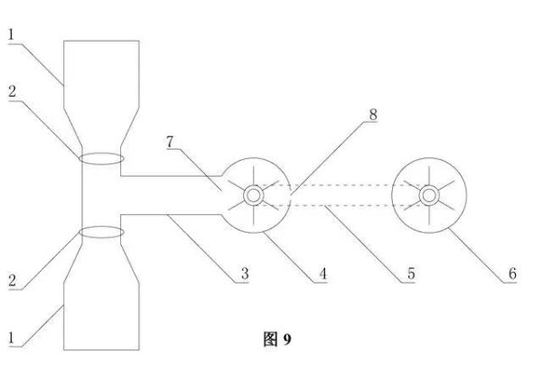 二、如圖8所示,用壓縮空氣驅動水力循環(huán)的形式,帶動水力發(fā)電機發(fā)電,從而使電站小微化、任意化,其中指示線分別代表:1.高位水池;2.回流管;3.導流管;4.水力發(fā)電機;5.尾水池;6.單向閥;7.廢氣閥;8.儲水室;9.氣閥;10.輸氣管;11.連接器。