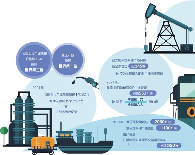當下,全球航運業(yè)加快向綠色可持續(xù)發(fā)展轉型。低硫燃料油成為國際船用燃料油市場主流品種。在亞太地區(qū),船用燃料油市場份額占比超過45%,成為全球最大的船用油消費市場。其中,我國浙江舟山又具有特殊地位。2021年,我國浙江舟山保稅船供油規(guī)模已突破552萬噸,穩(wěn)居中國第一大、全球第六大加油港。