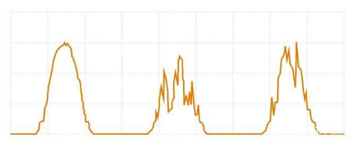 圖2為海外某200MW電站三天的實際發(fā)電曲線,電站采用1.42倍容配比+跟蹤系統(tǒng)設計。電站逆變器從早上8點到下午5點一直處于滿功率運行狀態(tài),相較于圖1,該電站發(fā)電曲線幾乎呈平直狀態(tài),即使光照出現(xiàn)一定程度的波動,逆變器輸出功率也只是出現(xiàn)微小變化,整個電站的輸出更加穩(wěn)定。