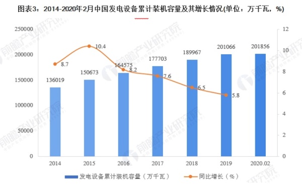 2020年1-2月,我國(guó)新增發(fā)電機(jī)裝機(jī)容量為790萬千瓦,截至2020年2月底我國(guó)發(fā)電機(jī)裝機(jī)容量達(dá)201856萬千瓦。