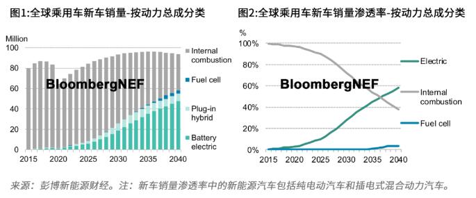 彭博新能源財(cái)經(jīng)最新發(fā)布的《新能源汽車(chē)市場(chǎng)長(zhǎng)期展望》報(bào)告指出,到2040年,新能源汽車(chē)在全球乘用車(chē)銷(xiāo)量的占比預(yù)計(jì)達(dá)58%,在乘用車(chē)保有量的占比達(dá)31%。除乘用車(chē)外,新能源車(chē)在公交車(chē)保有量的占比將達(dá)67%,在兩輪摩托車(chē)占比達(dá)47%,在輕型專(zhuān)用車(chē)占比達(dá)24%。