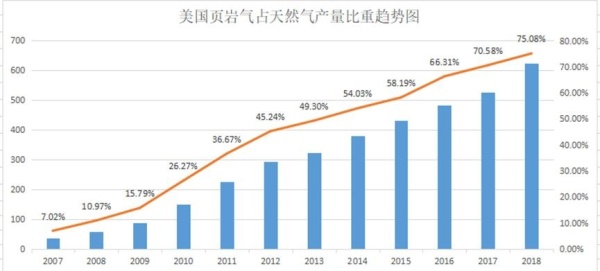 新世紀(jì)最先爆發(fā)的是美國頁巖氣革命,下圖顯示了美國頁巖氣從2007年起的高速增長。