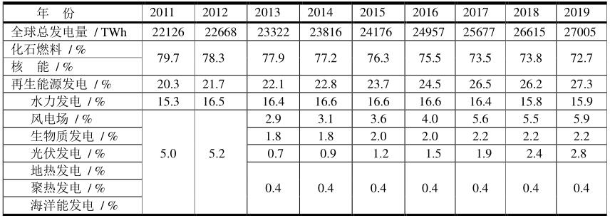 2010~2019年全球電力生產(chǎn)結(jié)構(gòu)(REN21統(tǒng)計(jì))