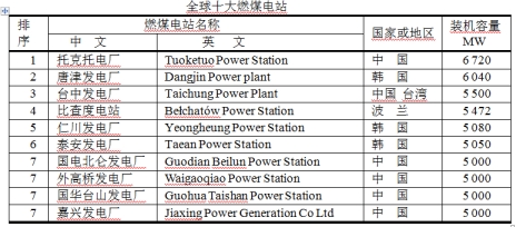 燃煤發(fā)電仍然霸占全球電力生產(chǎn)的主導(dǎo)地位,主要生產(chǎn)國是中國,在全球前十位中占六席。第一位由托克托電廠取代了原來的臺中發(fā)電廠。