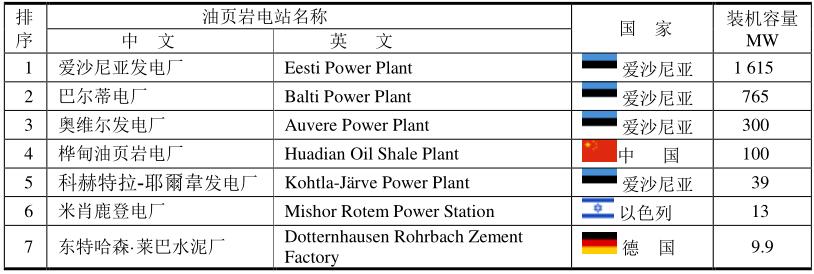 表中油頁(yè)巖電站所使用的燃料不是頁(yè)巖油,而是油頁(yè)巖。