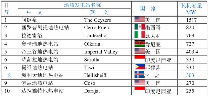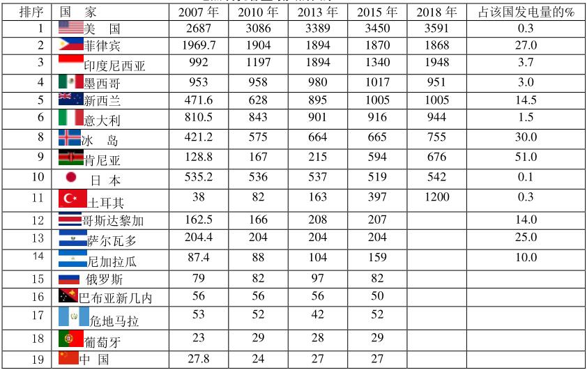 地?zé)嵫b機(jī)容量最大的國(guó)家(MW)